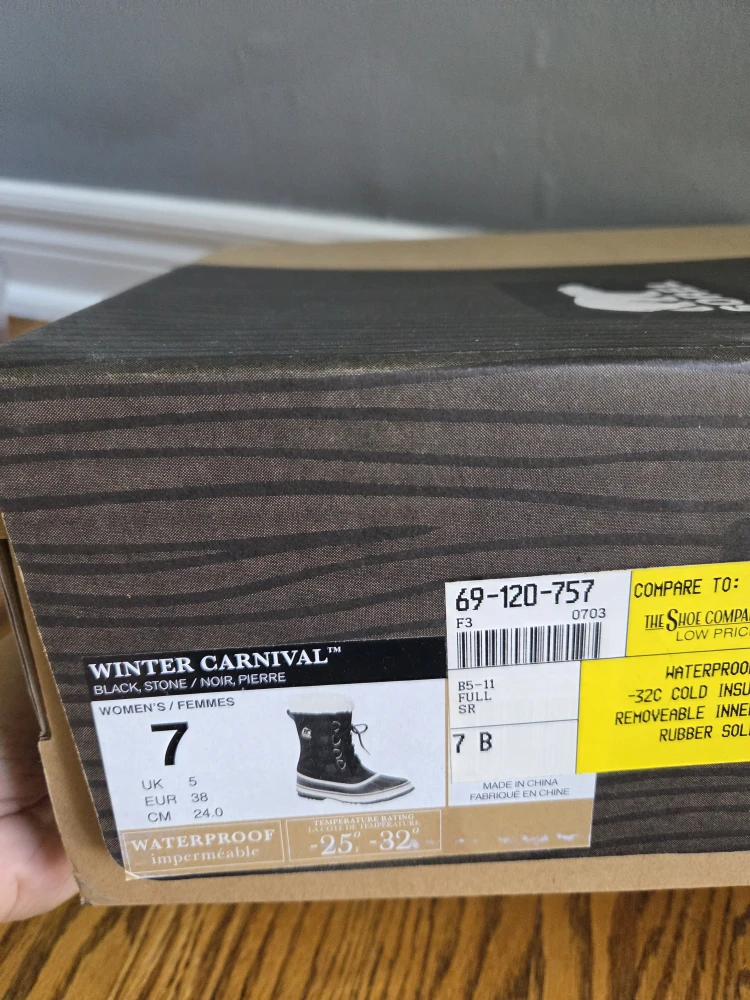 Selling a pair of Sorel Winter Carnival boots in women's size 7. These boots are waterproof and designed to keep your feet warm in cold weather. They're perfect for Canadian winters!