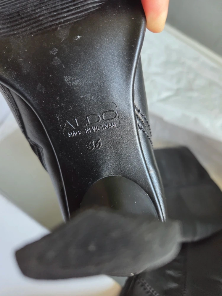 Selling a pair of Aldo knee-high boots in black leather. They are a size 6 and come with the original box! Brand new, worn once.