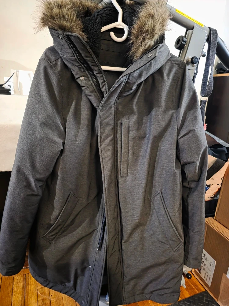 This style was from 2018-2019 before changing to its current look. Length is around mid thigh (covers bum, I'm 5'7). Super warm for winter. Attached hood with removable faux fur. Waist drawcord, all front pockets are lightly lined for warmth. I have way too many winter jackets so I'm selling trying to make room. No rips/tears, smoke free home.