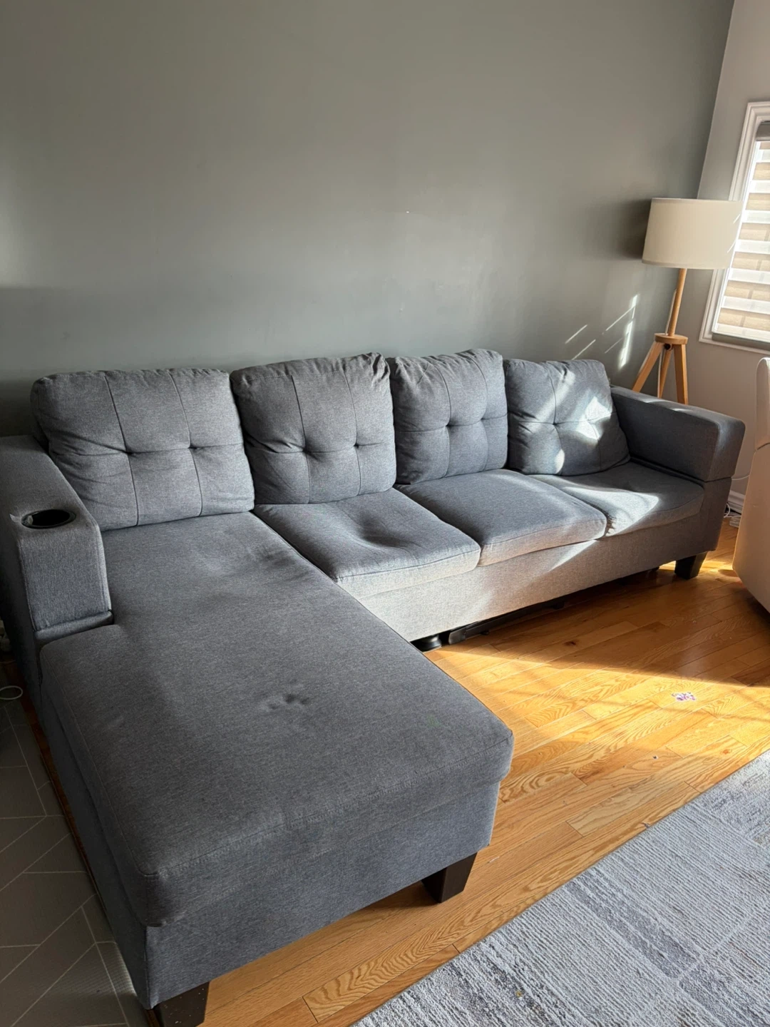 4 seat Grey Sectional Sofa with Storage