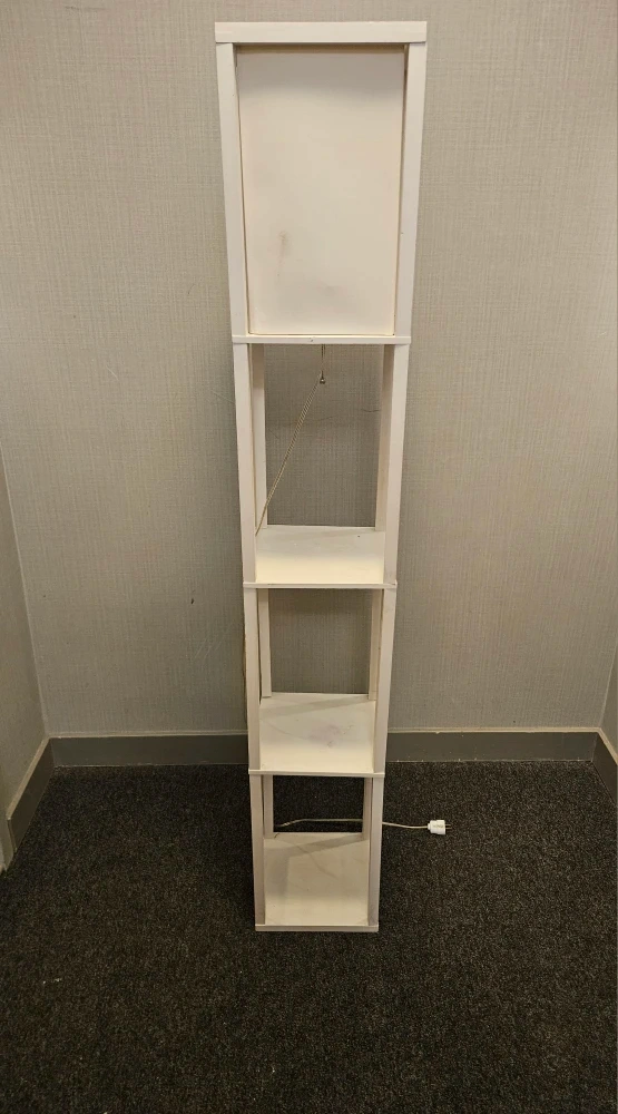 Light up your living space with this multifunctional floor shelf lamp. Display photographs or other home decor on the 3 shelves while the linen lamp shade casts a soft, warm glow throughout your room. Versatility and style at its best, this floor lamp will add sophistication to any home's decor.