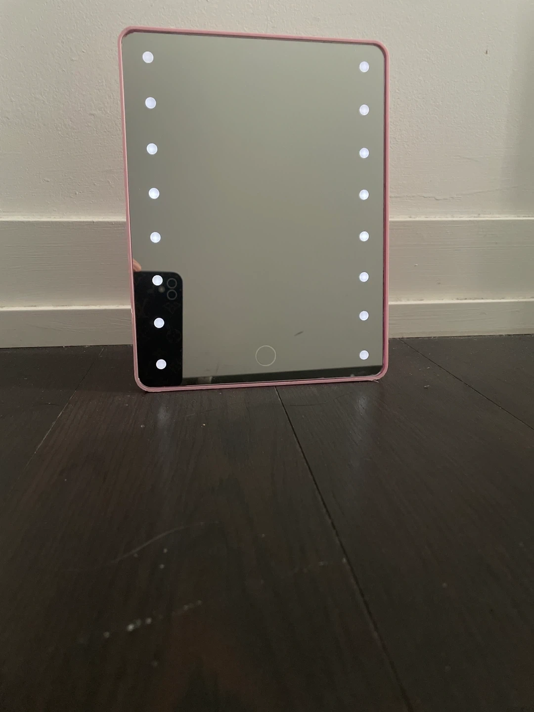 618Selling a pink vanity mirror with adjustable LED lights! It's perfect for getting ready and applying makeup. The lights are nice and bright, and it's in great condition. It would look great on any vanity or desk!