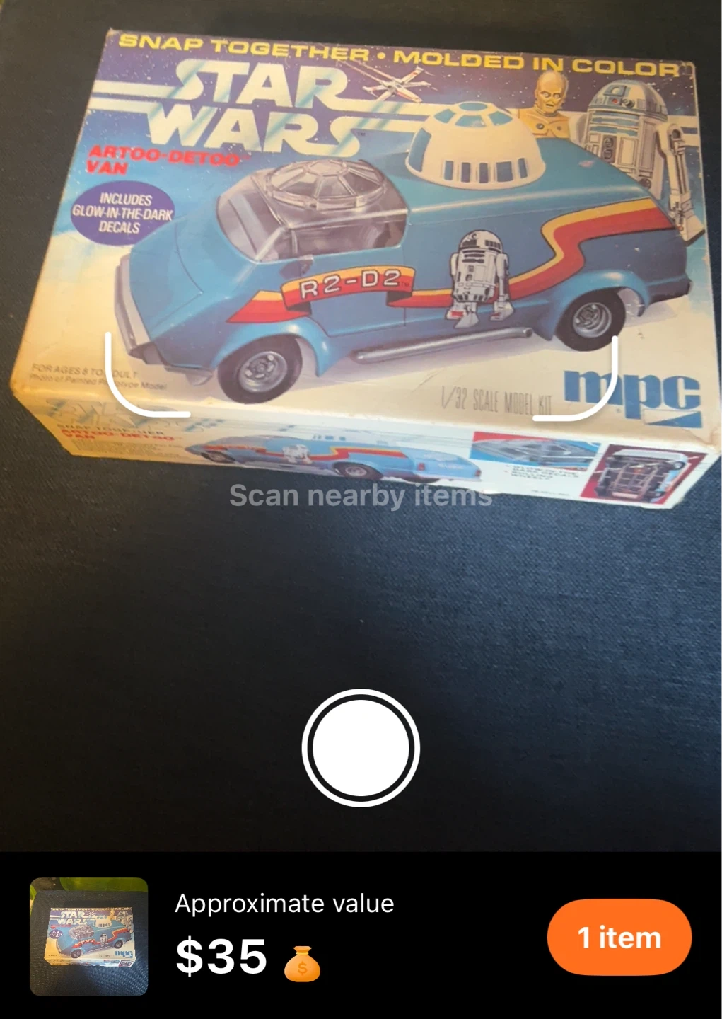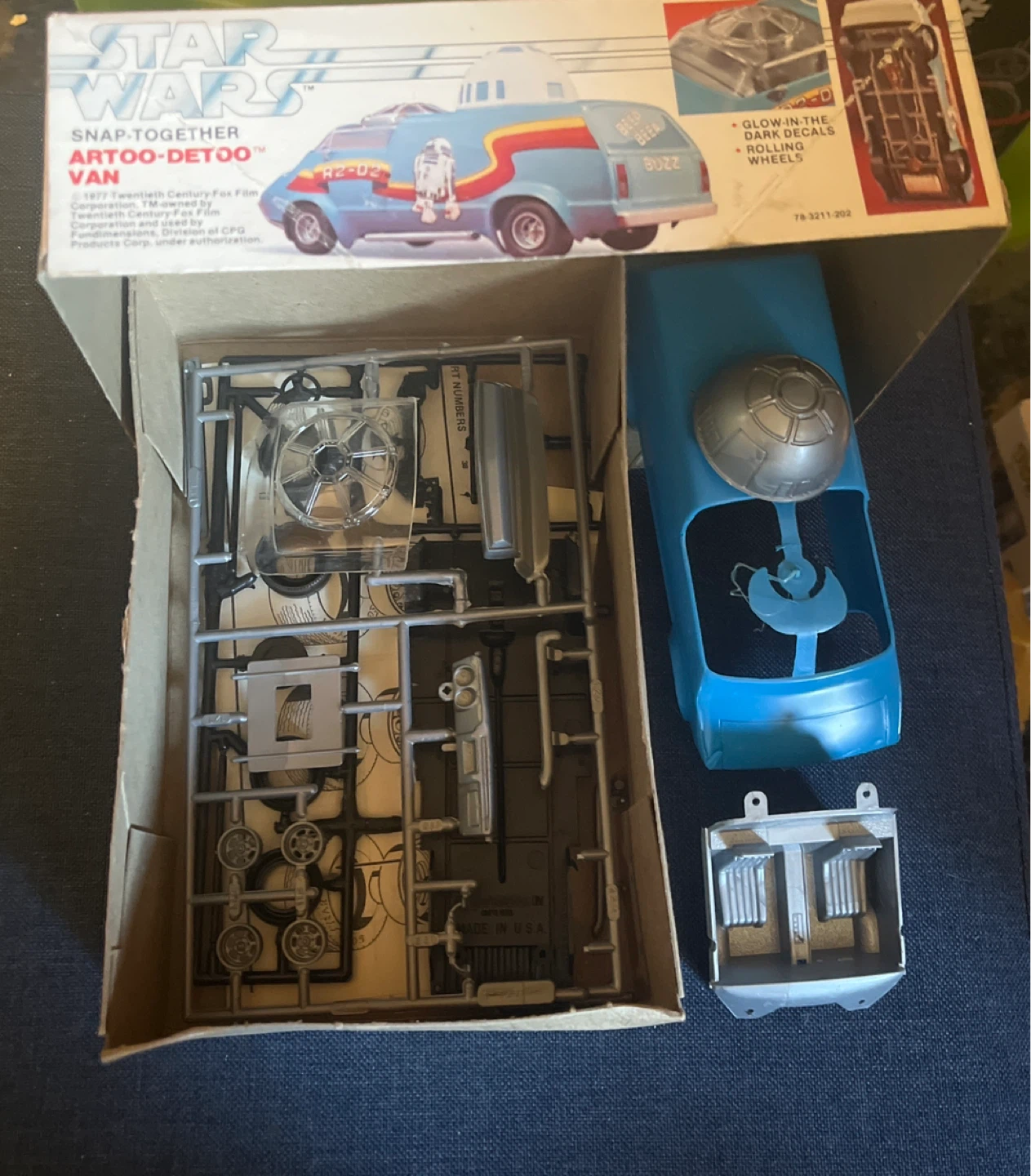 Selling a Star Wars Artoo-Detoo Van model kit by MPC! It's a 1/32 scale model kit. The box says it's snap-together and molded in colour, with glow-in-the-dark decals included. Perfect for any Star Wars fan or model enthusiast!