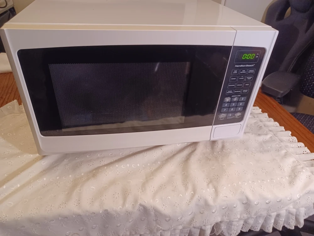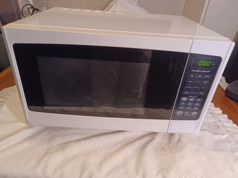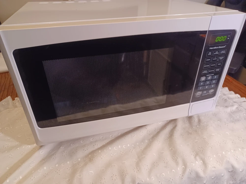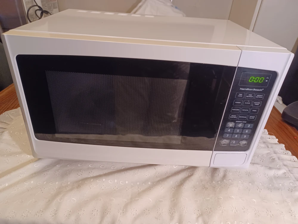 Selling a Hamilton Beach microwave in great condition! It's white and ready to heat up your meals. Perfect for small spaces or anyone needing a reliable microwave for everyday use.