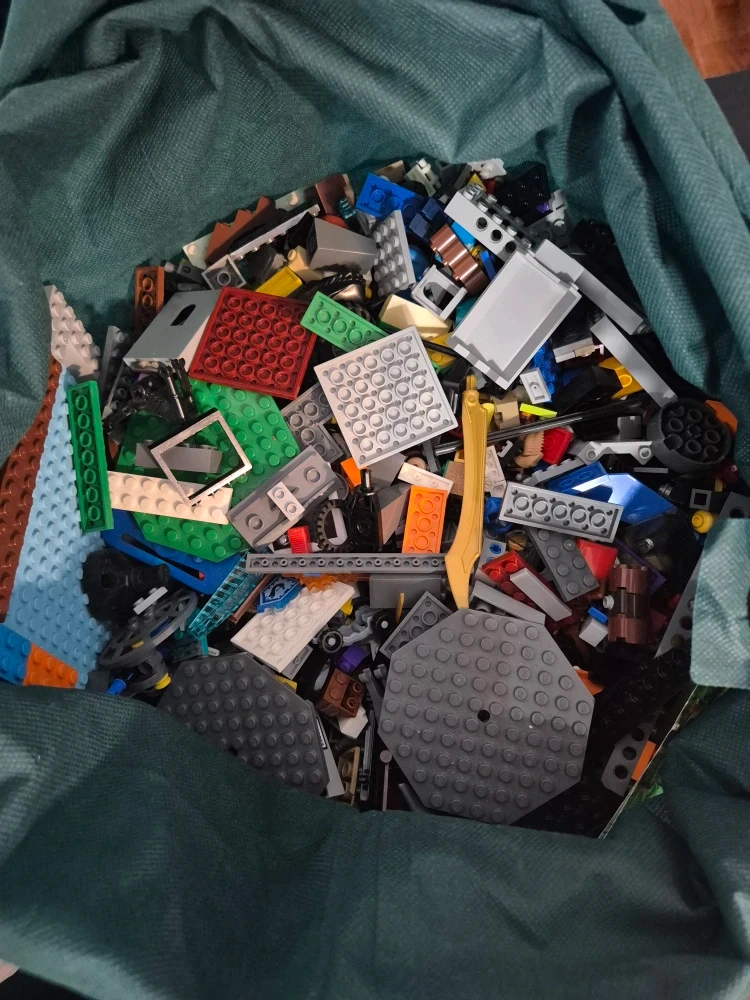 I'm selling a big bag of mixed LEGO pieces! Perfect for anyone looking to expand their LEGO collection or start a new creative project. Lots of different shapes, sizes, and colours to spark your imagination. Hours of fun await!