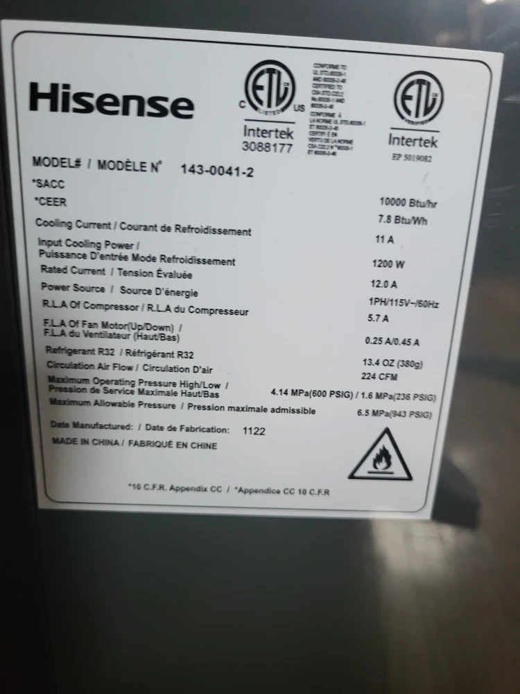 Selling a Hisense DC Inverter portable air conditioner! It's in great working condition and ready to keep you cool. The waterless design doesn't require draining, making it super convenient to use. If the internal tank is full, code "E5" will alert you, and you can easily drain it according to the instructions in the user manual