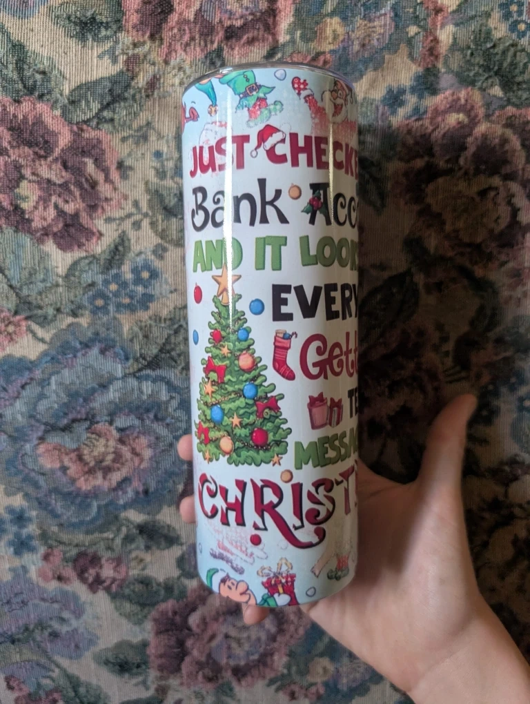 Buy & SellChristmas Themed TumblerChristmas Themed Tumbler$20A fun Christmas themed tumbler! Perfect for the holiday season brand new 20 oz stainless steel perfect for hot and cold ConditionNewWHERE TO MEET1478 queen st westView MapSELLERverifiedkandaceCredit Valley19911 reviews0 chats·1 favorites·6 views