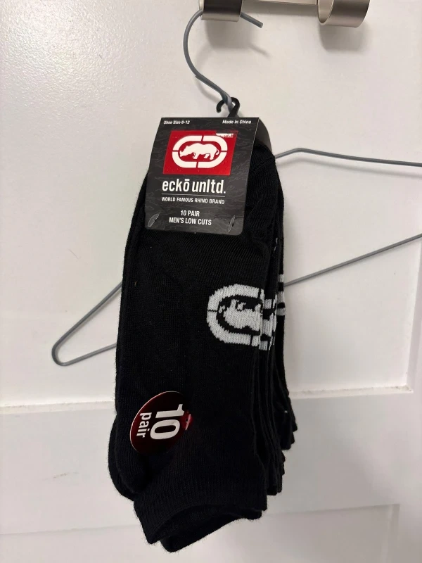 Selling a pack of Ecko Unltd. men's low cut socks! These are black and come in a pack of 10 pairs. The size is for shoe sizes 8-12.
