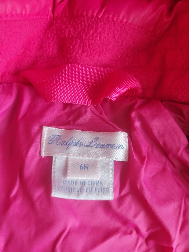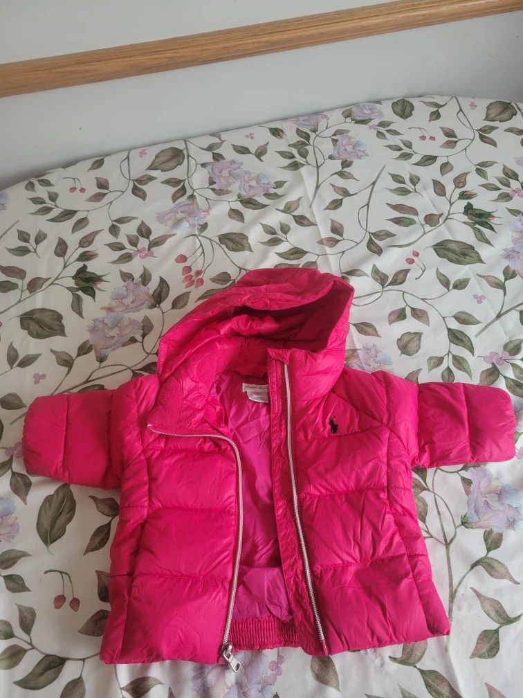 Selling a super cute Ralph Lauren puffer jacket in a vibrant pink! It's in great condition and perfect for keeping your little one warm. The size is 6M.