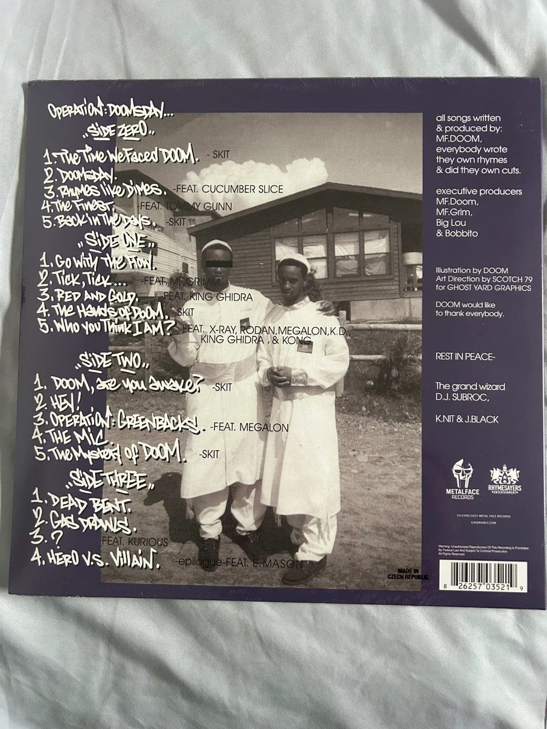 Selling a vinyl record of MF DOOM's classic debut album, Operation: Doomsday! Includes tracks like Doomsday, Rhymes Like Dimes, and Red and Gold Firm price, only serious buyers!