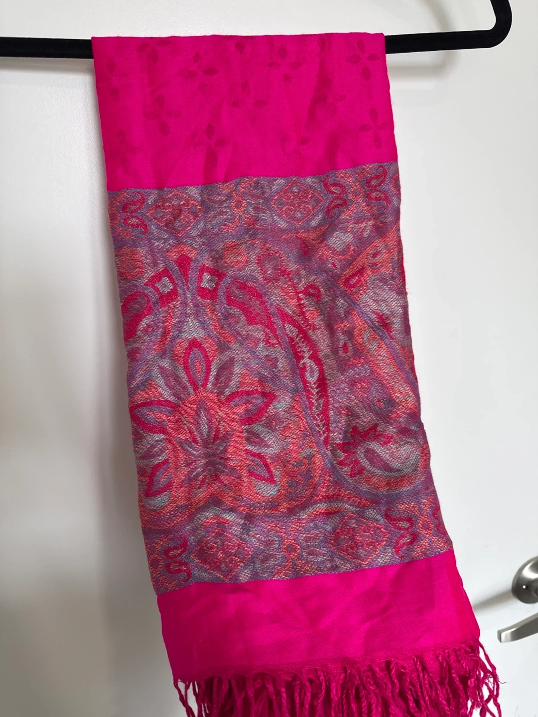 A beautiful pink scarf with a lovely patterned design! It's in great condition and ready to add a pop of colour to your wardrobe