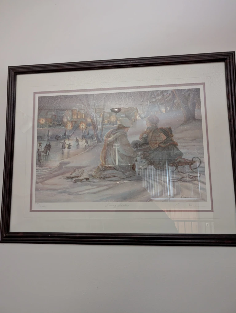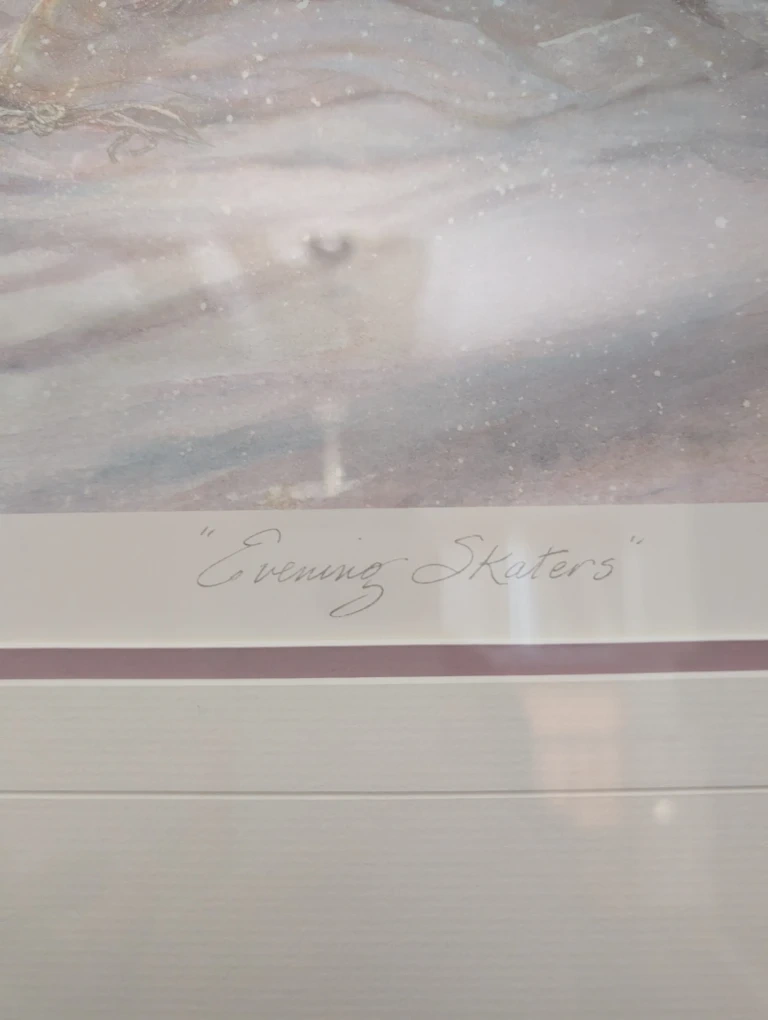 Selling a framed print of "Evening Skaters" by Romance, dated 1995