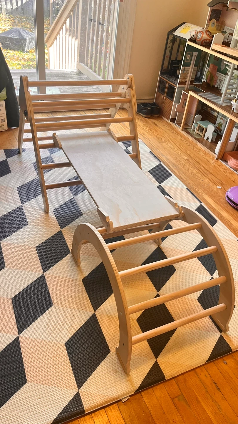 Selling a wooden climbing triangle set for kids! It includes a climbing triangle, a ramp, and a rock wall attachment. Great for active play and developing motor skills for your little ones. Definitely a great indoor activity for the colder months to come. Triangle folds for easy storing. Great for smaller spaces.
