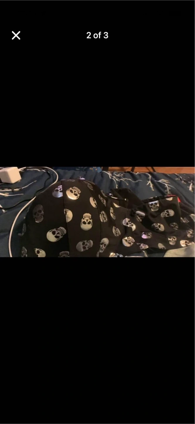 Selling a Dream Wire-Free Bra in a fun polka dot skull black pattern. It's a size 46D from Torrid