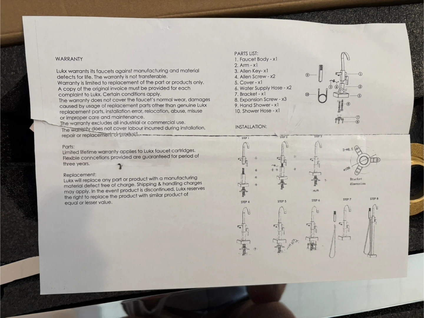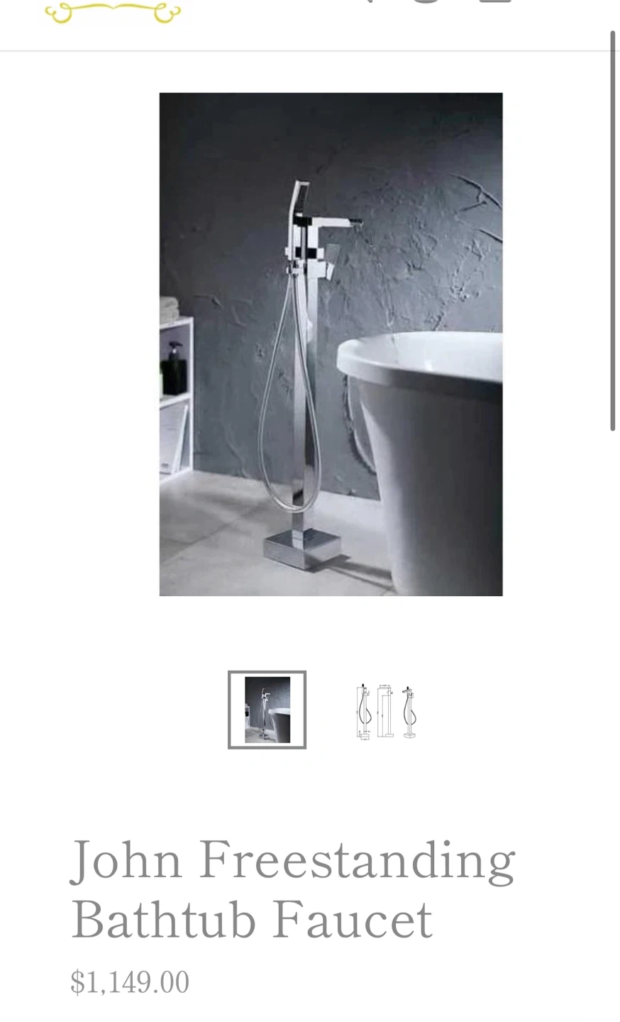 Selling a brand new LUKX John Freestanding Bathtub Faucet, still in its original box! It comes with all the necessary components for installation, including the faucet body, arm, Allen key, Allen screw, cover, water supply hose, bracket, expansion screw, handle, and shower hose. The original price was $1,149.00.