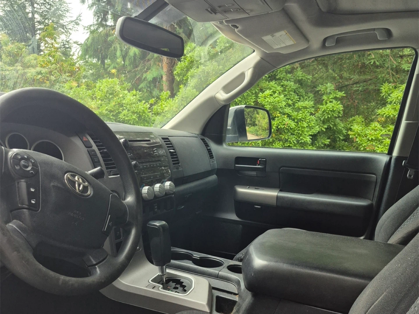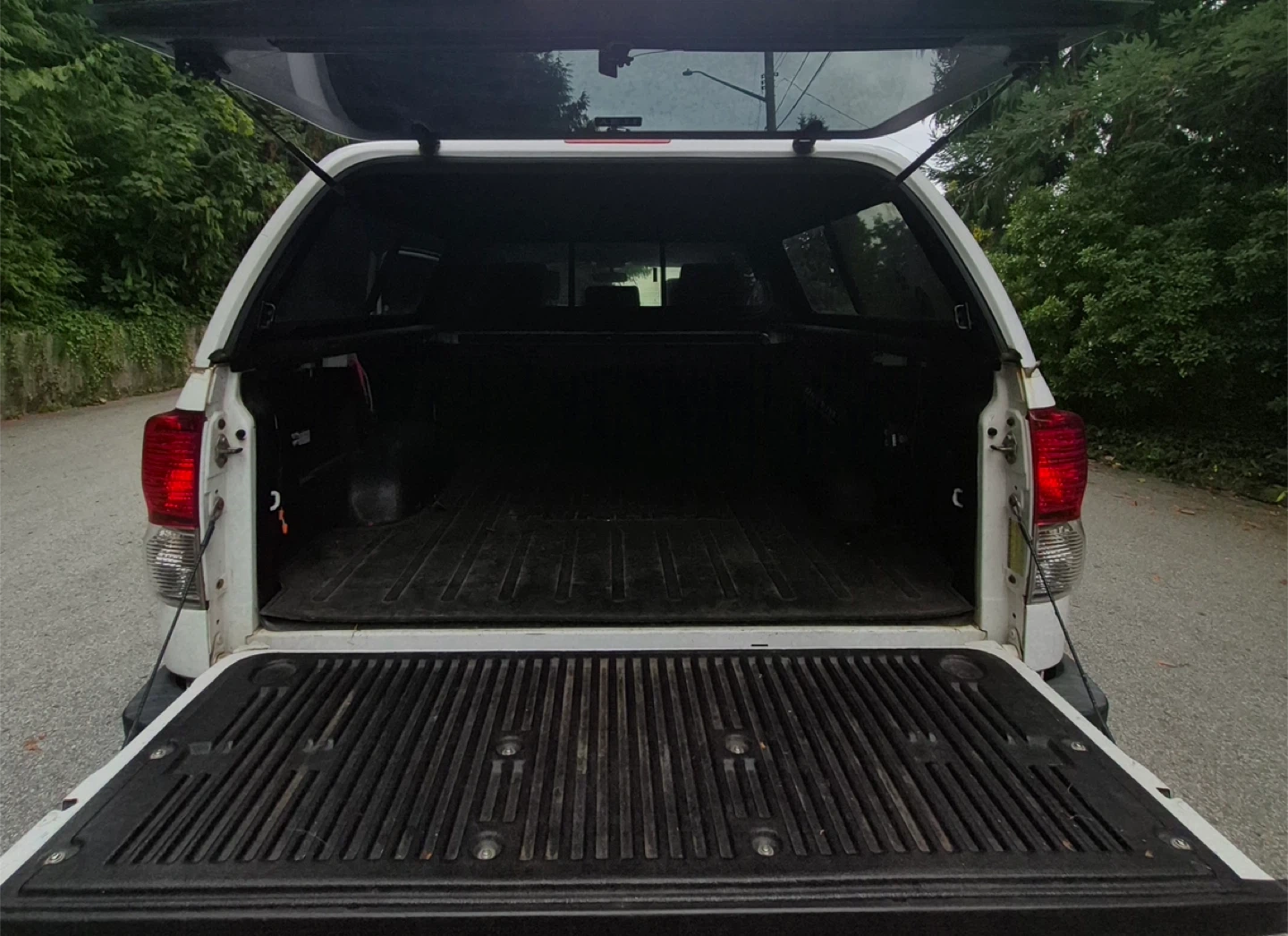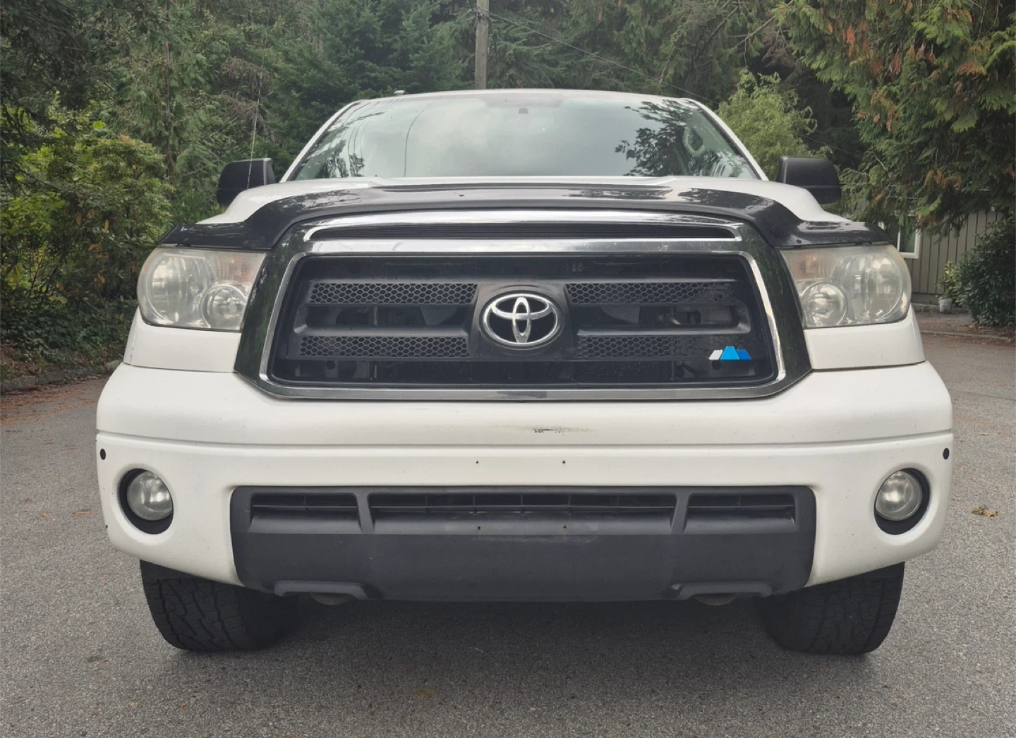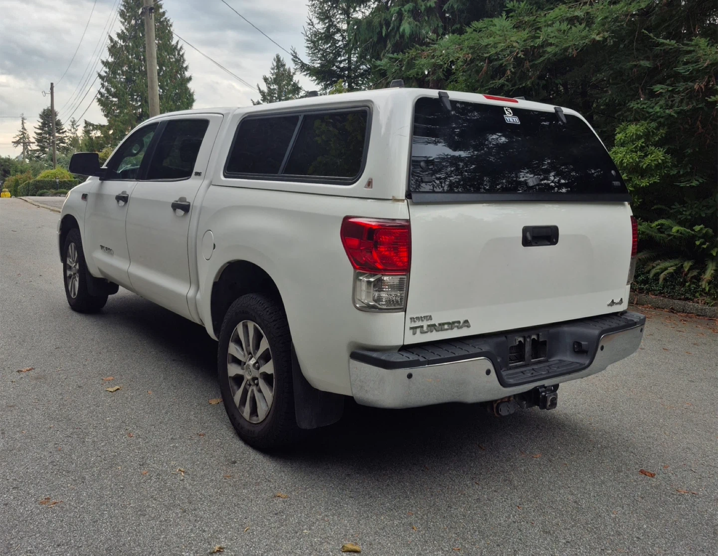 Selling a 2014 Toyota Tundra Crew Max. It's white and looks like a 4x4 model. It has a cap on the back. 382,000km. Replaced A/C compressor and safety inspected. Local BC truck, clean title. Drives and runs great.