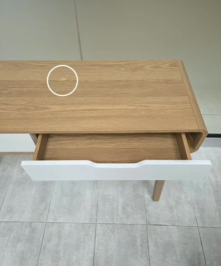 ▪︎ It has small chip/light scratches. One of the rail of the drawer is broken but still slide in and out fine . Other then that, everything is in good condition