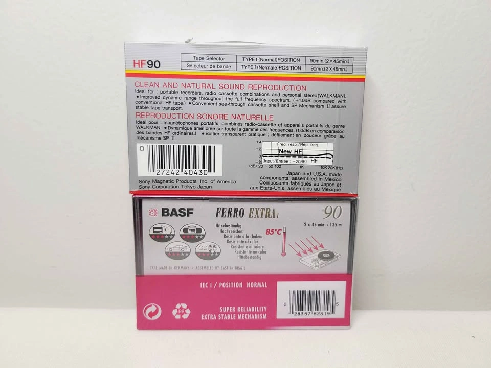2x BASF Ferro Extra I 90-minute blank audio cassette tapes