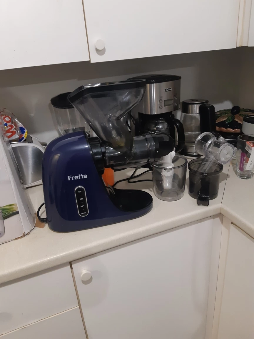 Selling a Fretta slow juicer in great condition! It's perfect for making healthy and delicious juices at home. It has settings for REV, OFF, SOFT and HARD.