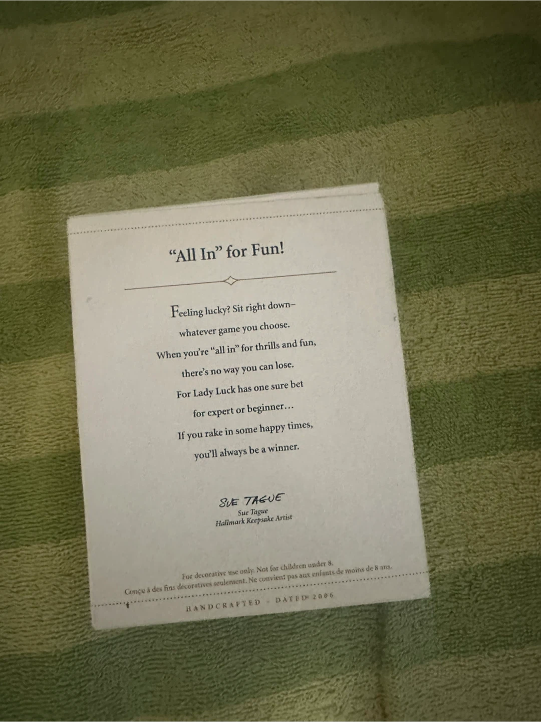 Hallmark Keepsake Ornament titled "All In for Fun!". It's a handcrafted Christmas ornament, dated 2006, perfect for adding a touch of whimsy to your holiday decorations
