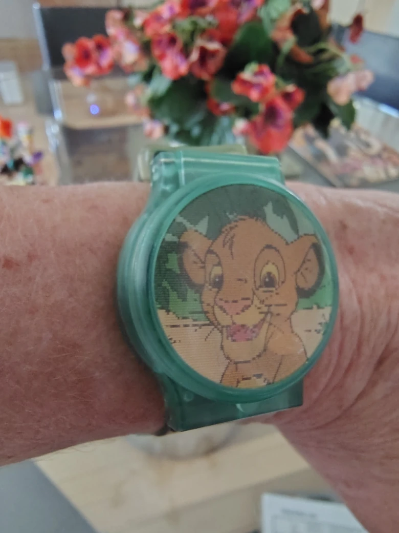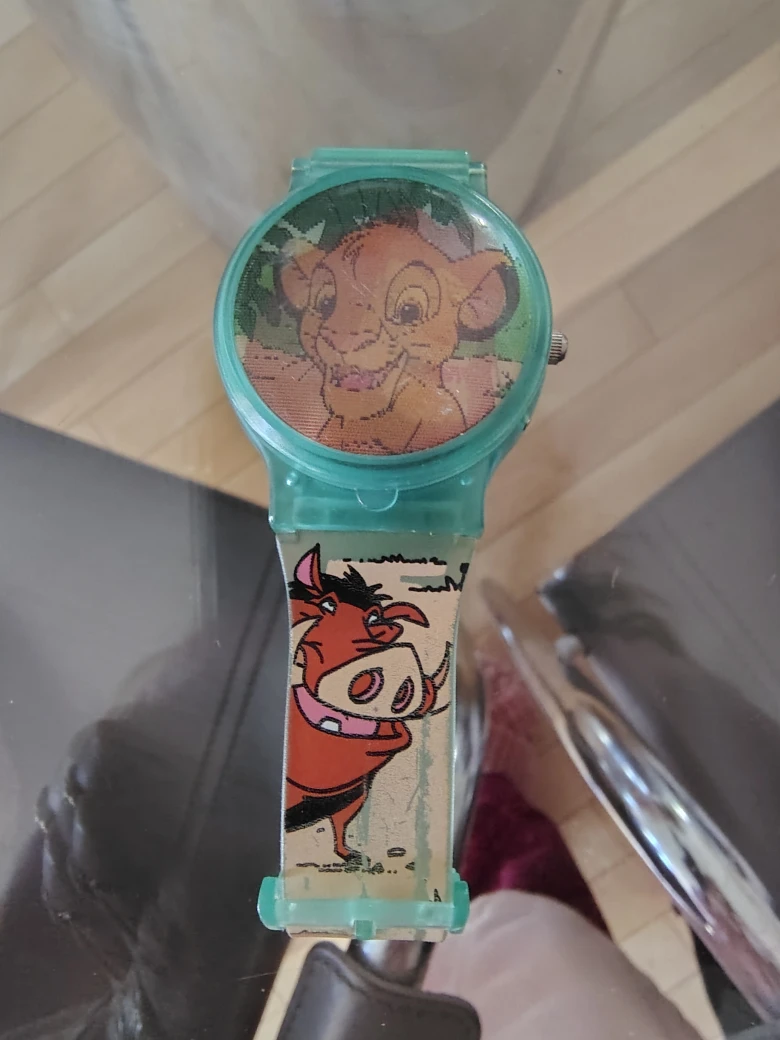 Beautiful vintage Lion King holographic pop-up watch from the early ’90s. This piece is in pristine condition and has been carefully stored in my collection for about 30 years. I am the original owner and only wore it once or twice.