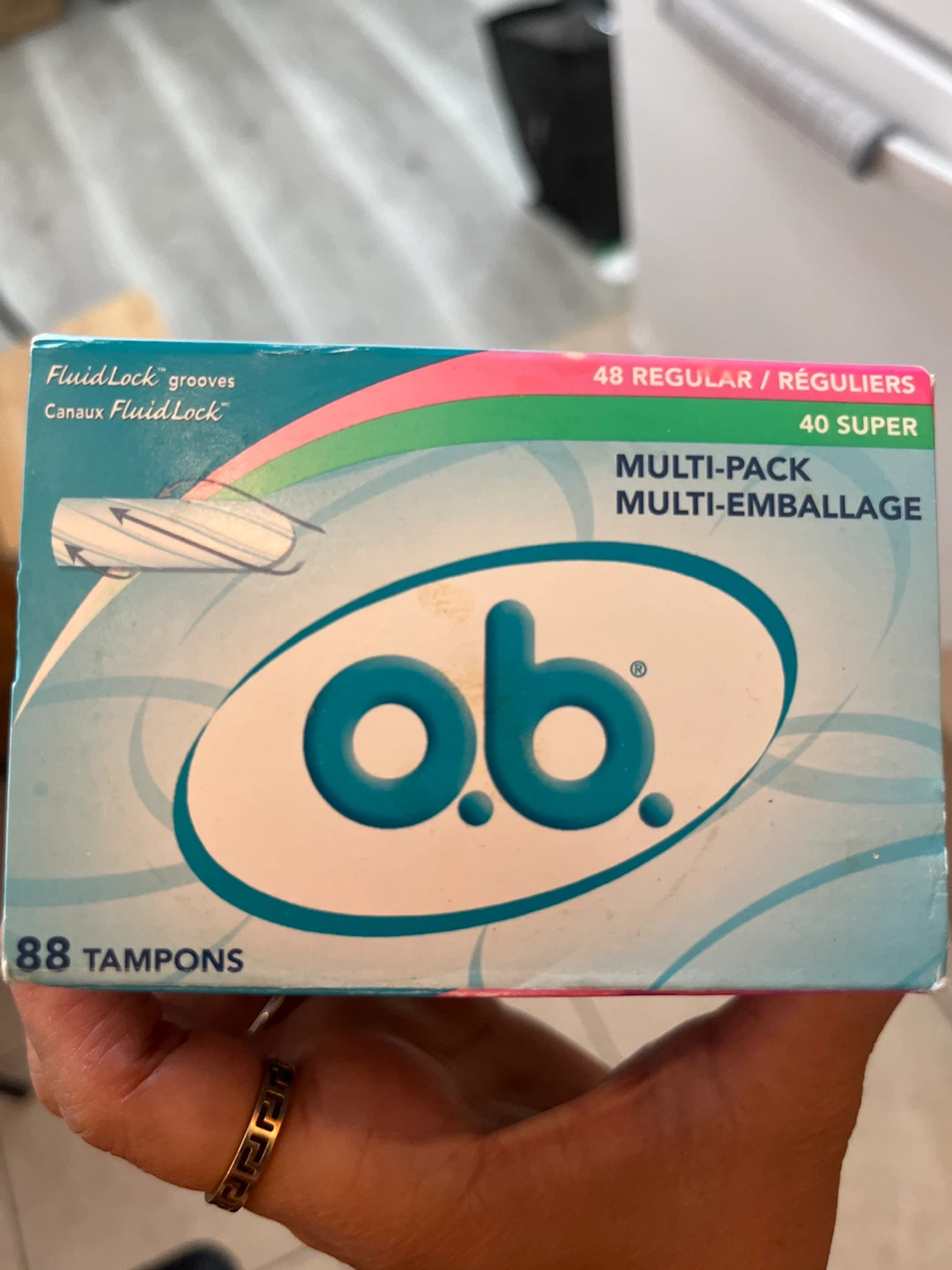 1 / 31 / 3Buy & Sello.b. Multi-Pack Tampons - 88 Counto.b. Multi-Pack Tampons - 88 Count$8Selling a multi-pack of o.b. tampons. The box contains 88 tampons, with 48 regular and 40 super absorbency tampons. Great for stocking up!ConditionNewBrando.b.WHERE TO MEET415 Willowdale AveView MapSELLERverifiedAdiraLynWillowdale E61192 reviews0 chats·0 favorites·8 viewsSEND CHAT TO SELLERHi AdiraLyn! I’m interested in your listing.Hi AdiraLyn! I’m interested in your listing.Get the Karrot app to chatSign In to chat