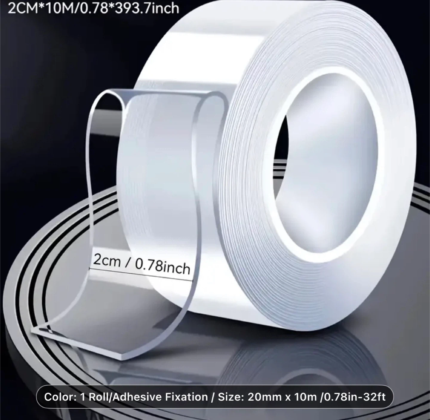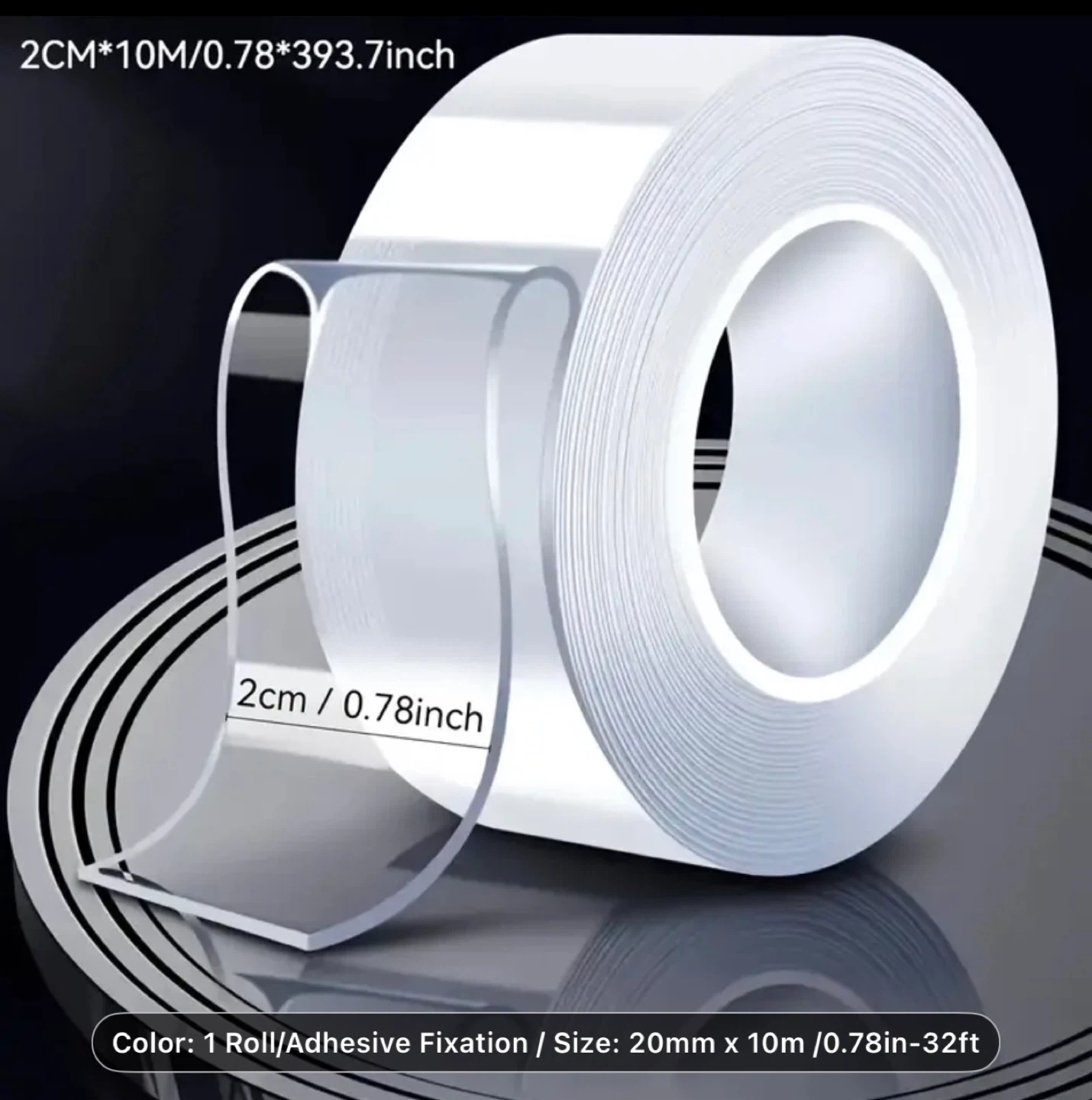 63Super Strong Nano Double Sided Tape, 20mm/30mm x 393.7" Roll, Thickened, Transparent, Residue-Free for Plastic, Wood, Glass, Stone, Metal-PE Material, Acrylic, High Viscosity, Thick Nano Double Sided Tape