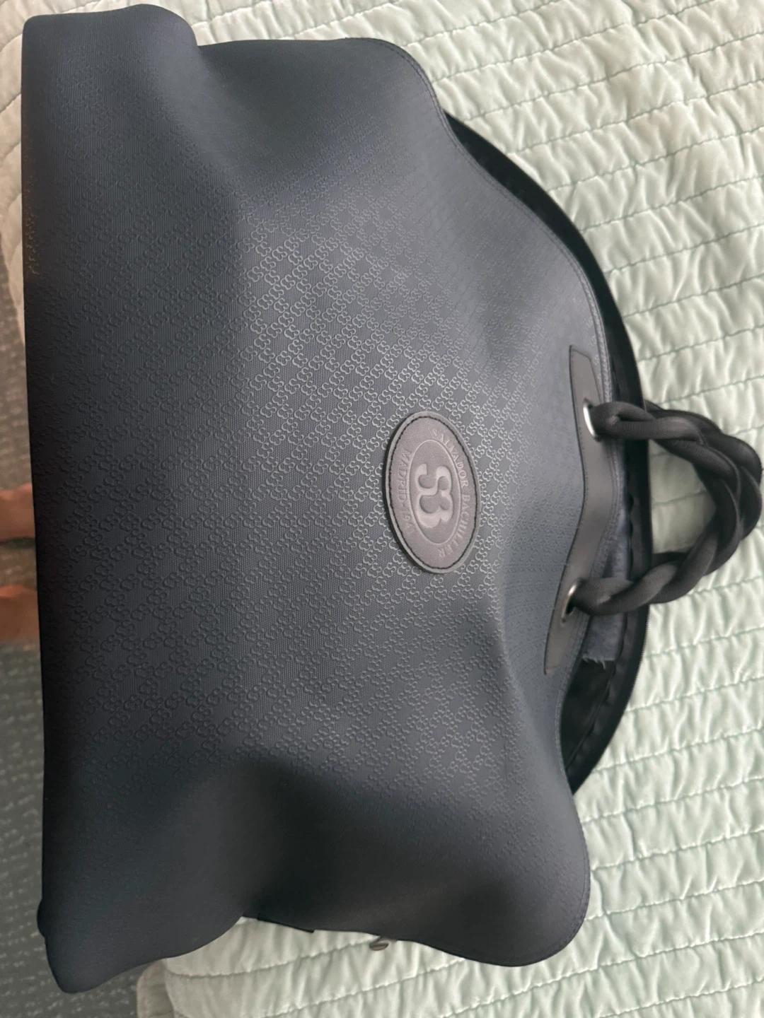Here's a stylish black travel bag from Salvador Bachiller! It's in great condition and ready for your next trip. The bag features a unique textured design and a spacious interior with a convenient pocket