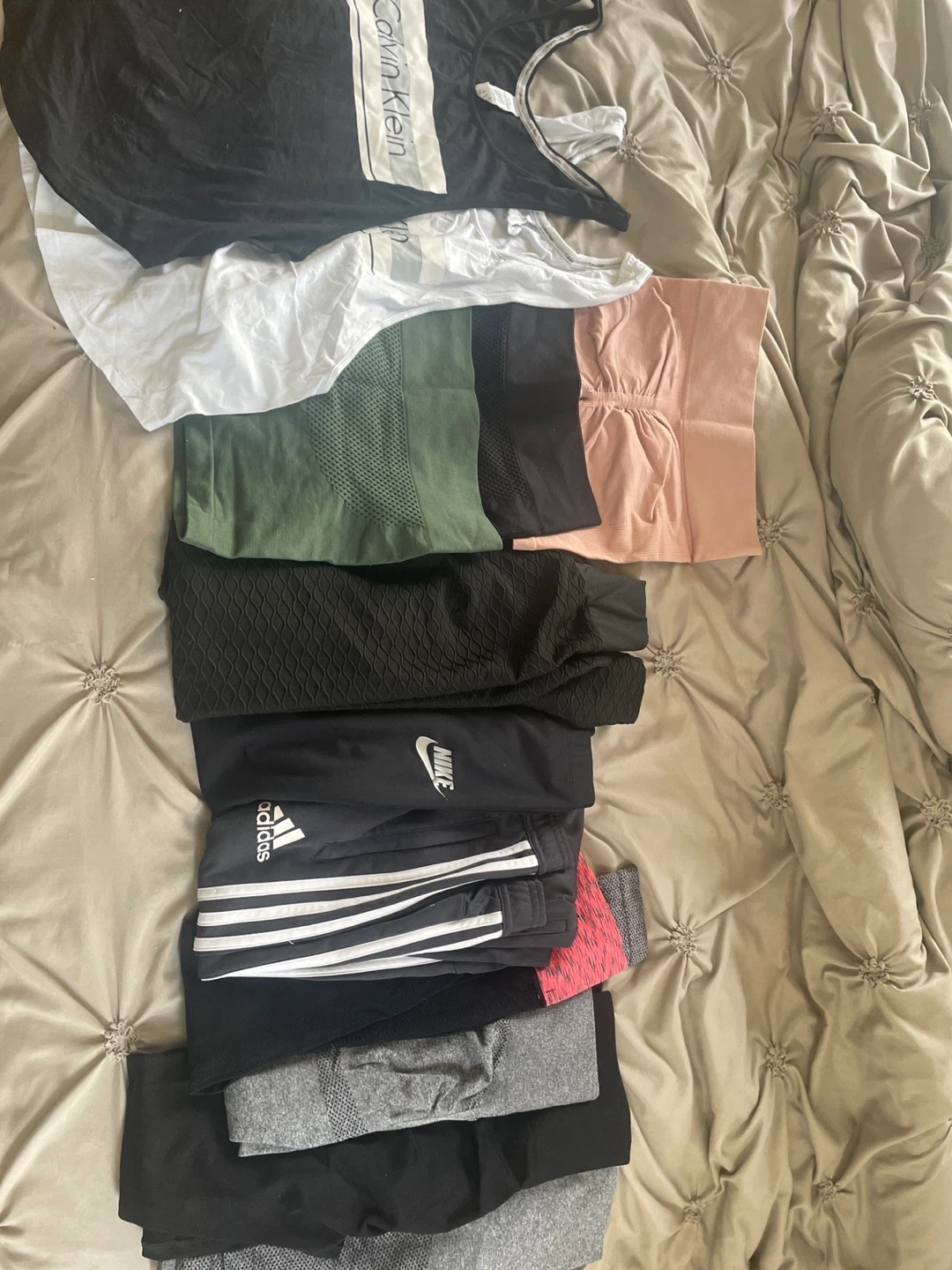 Selling a bundle of 12 items activewear! This includes leggings from Adidas and Nike, as well as tank tops from Calvin Klein. Perfect for workouts or everyday wear!