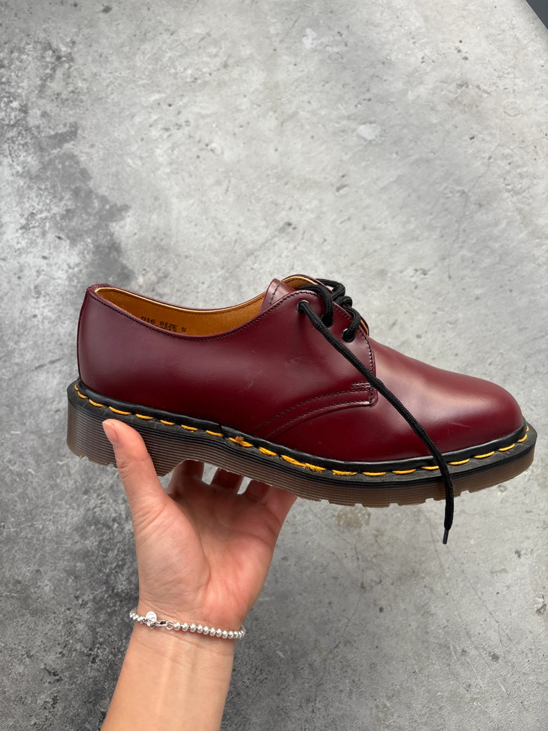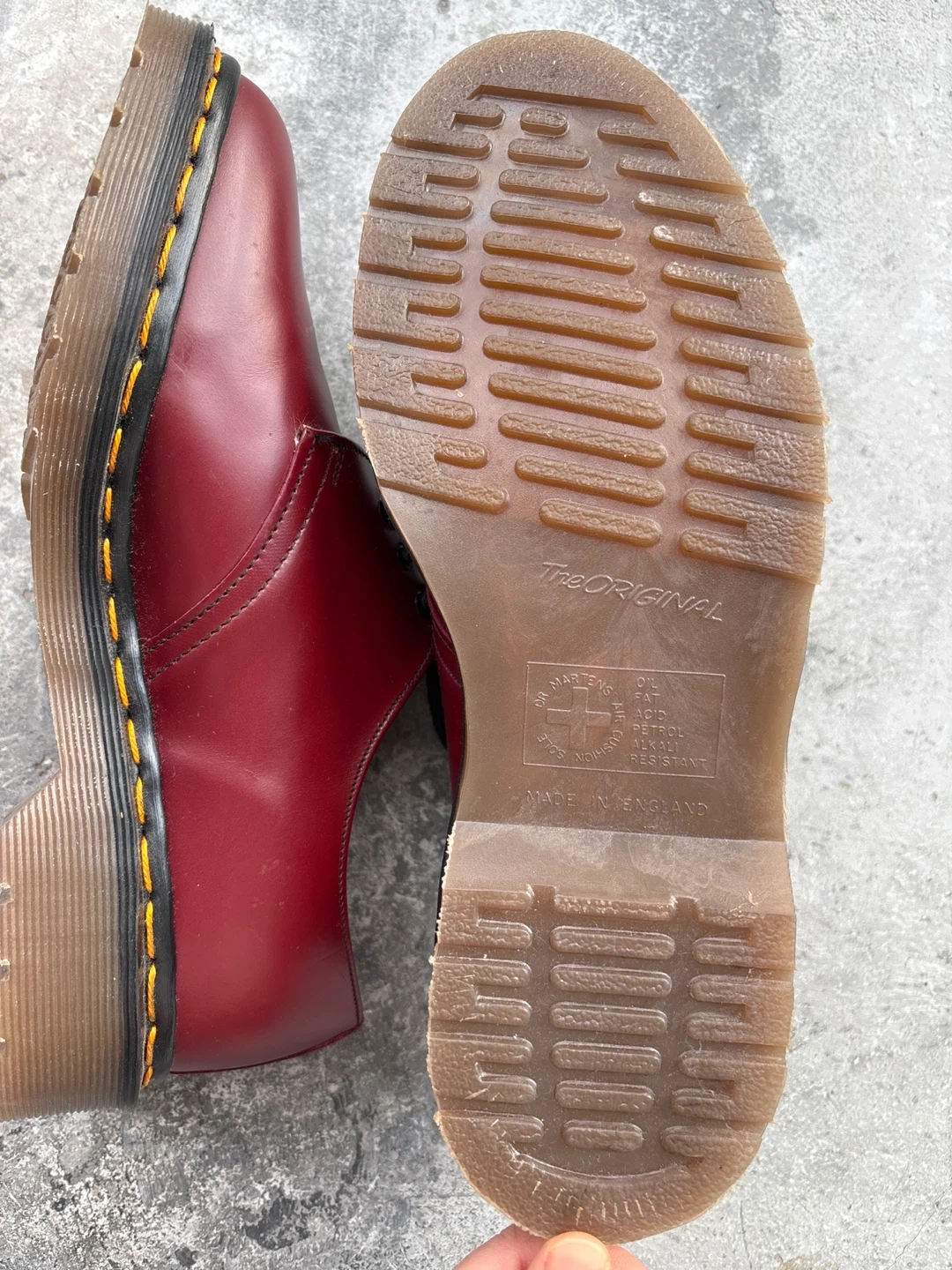 Selling a pair of The Original Dr. Martens 1461 shoes in cherry red. These classic shoes are made from smooth leather and feature the iconic yellow stitching. Size UK 5. Made in England.