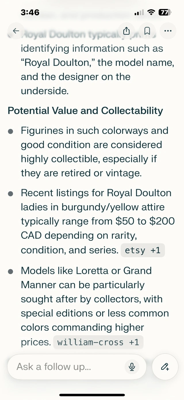 10Royal Doulton Figurine Loretta Mint condition Price is firm I have 4 figurines on Kijiji you can have them all for 200 Firm
