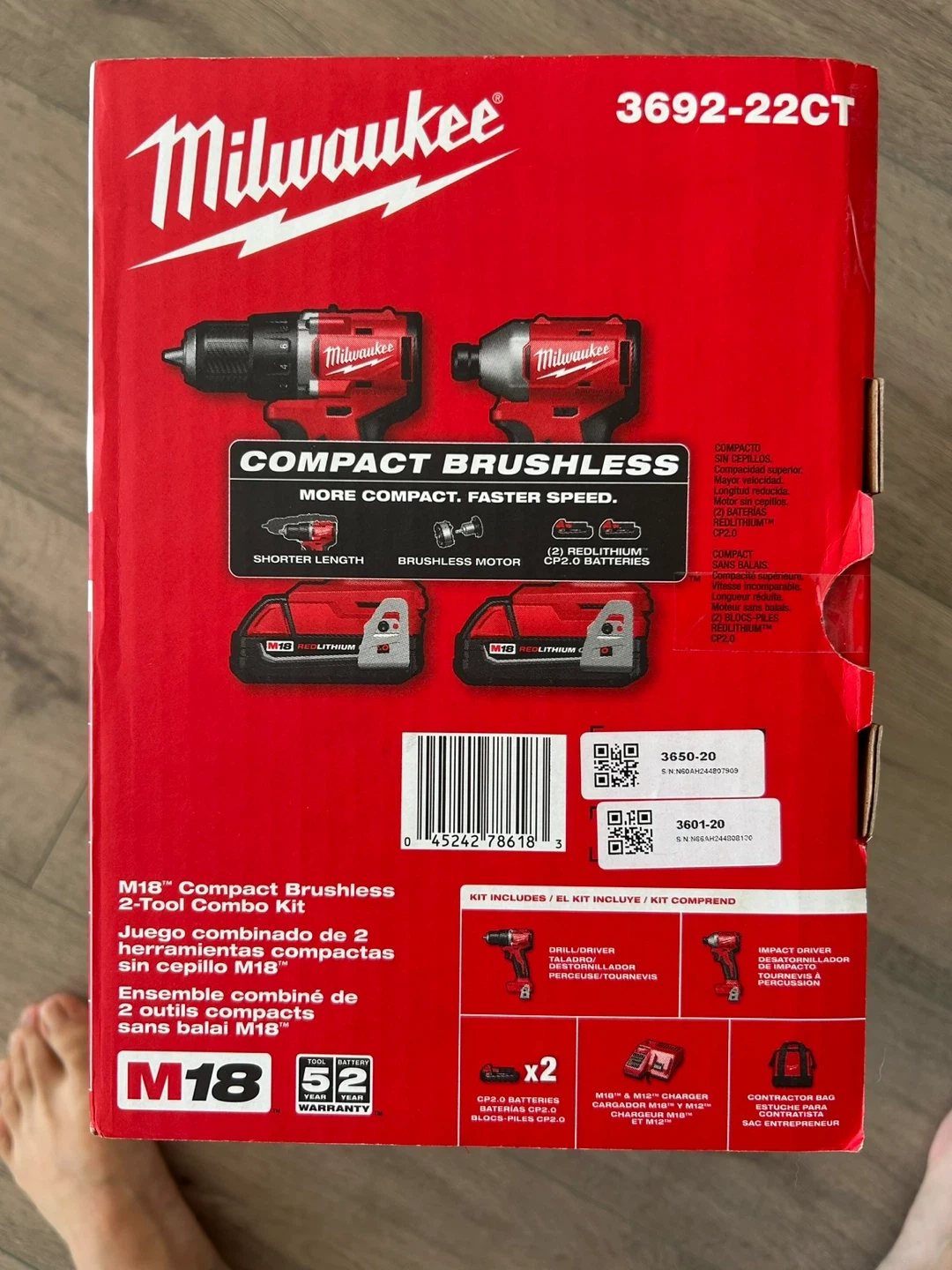 Selling a Milwaukee M18 Compact Brushless 2-Tool Combo Kit (Model 3692-22CT). Includes the drill/driver, impact driver, charger, two CP2.0 batteries, and the contractor bag. It's in great shape and ready for your next project!