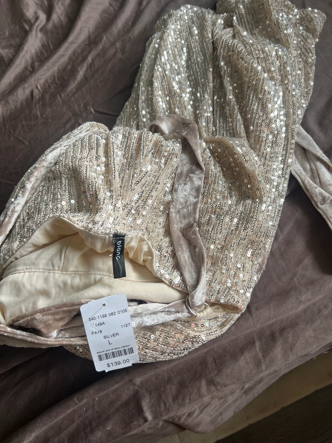 Selling a Blanc sequin lace-up back jumpsuit in size S. It's a beautiful silver colour and originally bought for $139. Perfect for a night out or a special occasion!