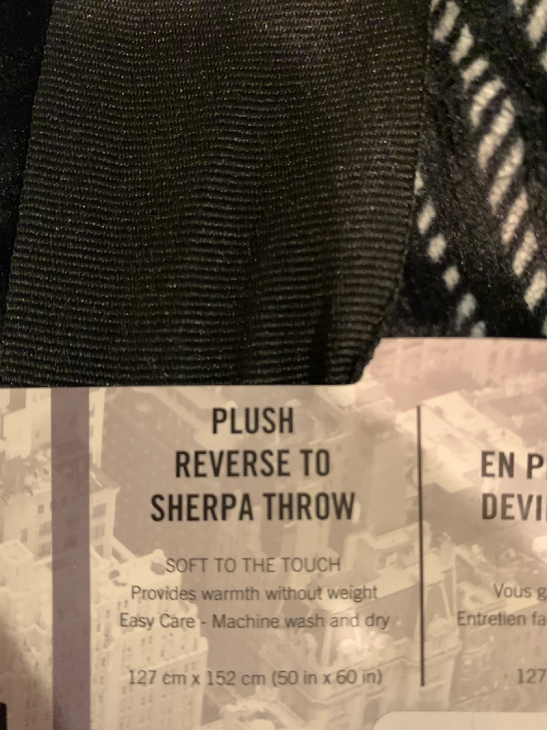 Selling a brand new Kenneth Cole Reaction plush sherpa throw blanket! It's still in its original packaging and has never been used. The blanket is soft to the touch, providing warmth without the weight. It's also easy to care for since it's machine washable and dryable. The size is 127 cm x 152 cm (50 in x 60 in). Comes with the box!