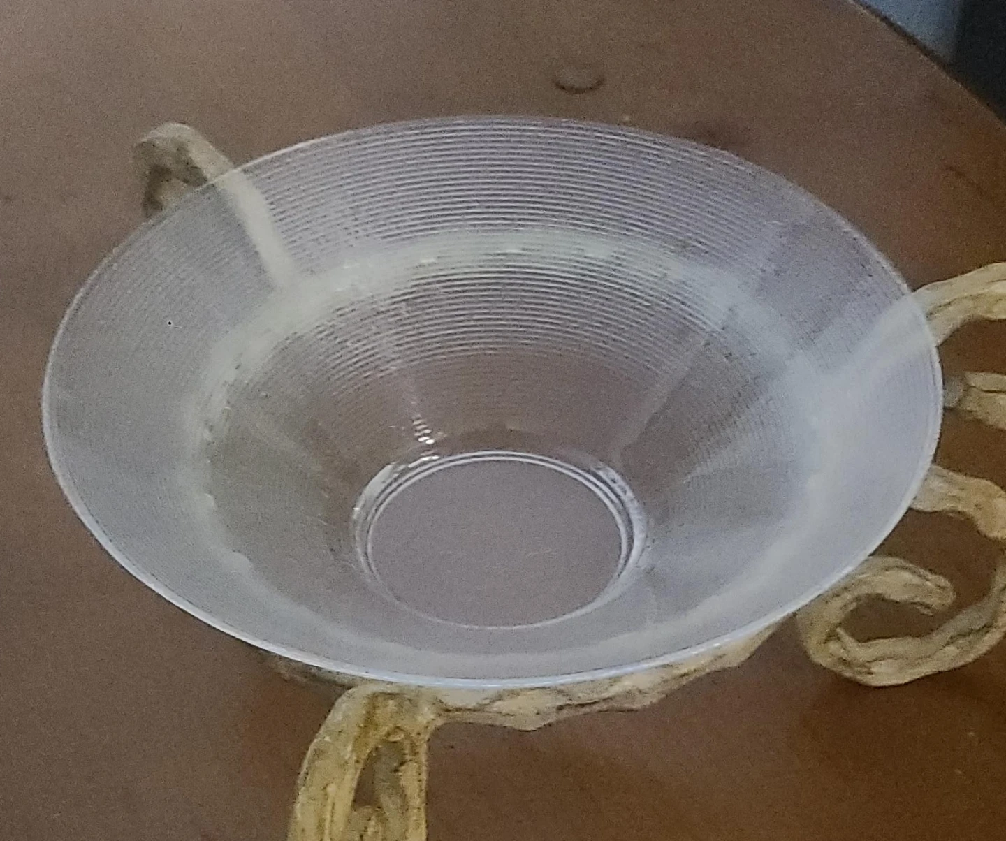 Selling a clear glass bowl that comes with a unique decorative stand. It's perfect for displaying fruit, holding trinkets, or adding a touch of elegance to any room. The stand has a textured, rustic look, giving it a charming, handcrafted feel. It's in great condition and ready to find a new home!