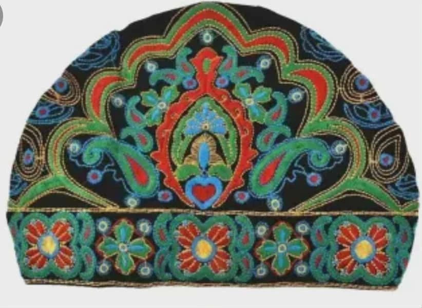 This is a beautiful, brand new Embroidery Turban Bennie hat! Perfect for adding a unique touch to your style.
