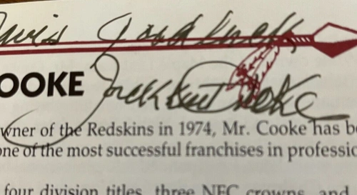 Redskins Jack Kent Cooke Signed 91 PRESS BOOK +GAME TICKET