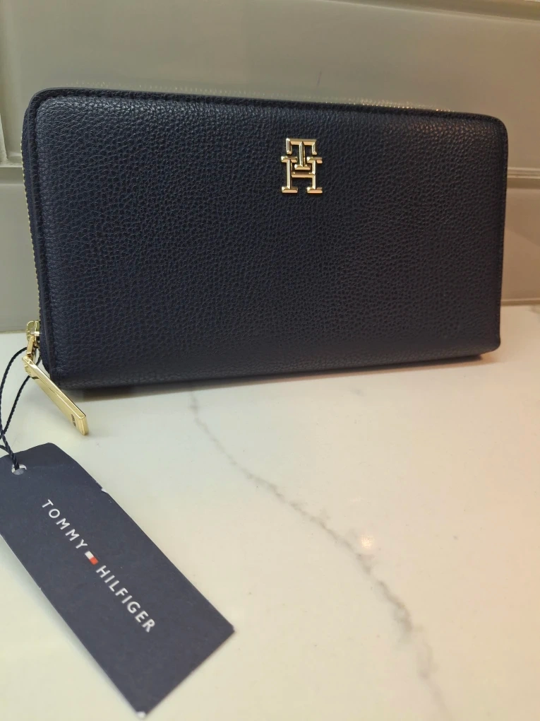 Selling a brand new Tommy Hilfiger wallet in a beautiful navy blue colour! It still has the tags attached, so it's perfect as a gift or for yourself. It features a gold zipper and the iconic Tommy Hilfiger logo. Never been used!