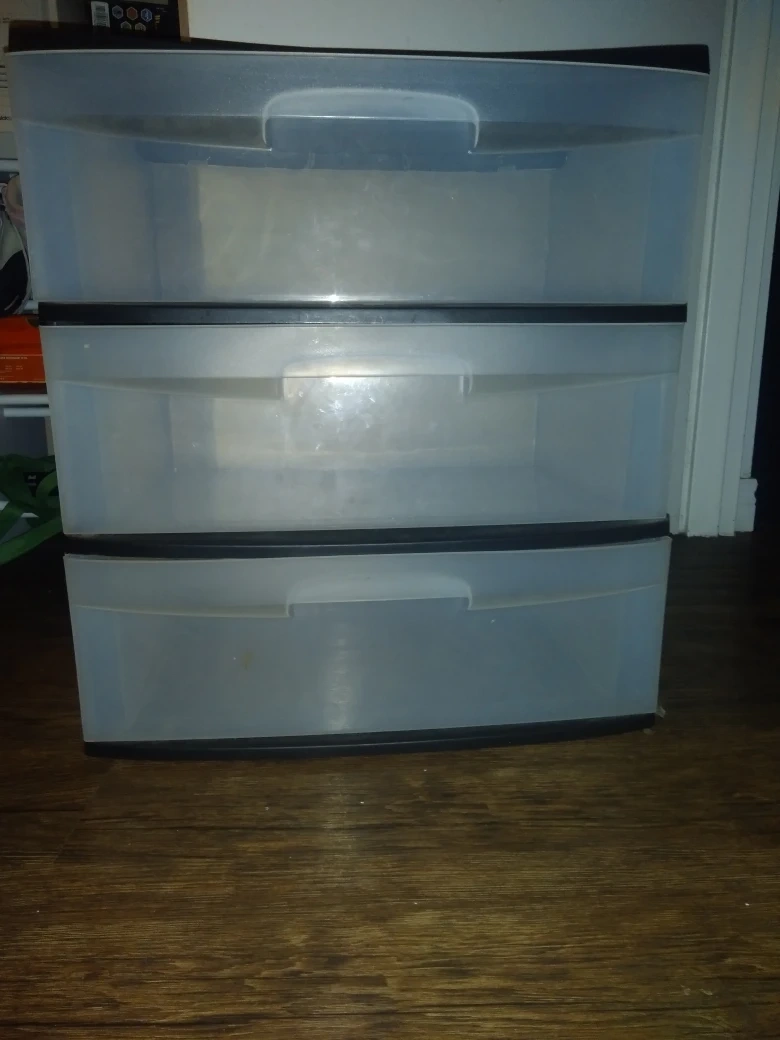 Selling a handy 3-drawer plastic storage unit. It's great for organizing clothes, toys, or anything else you need to keep tidy. Perfect for a bedroom, closet, or playroom!