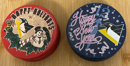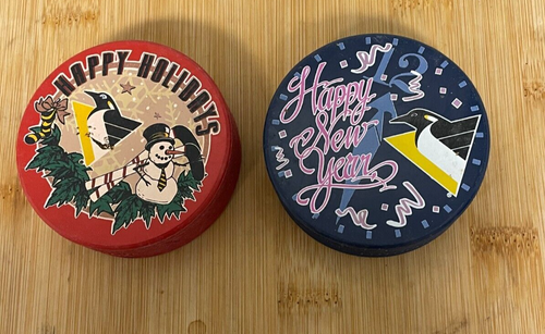 PENGUIN Holiday Hockey Puck Lot 2- NHL HAPPY PUCKS