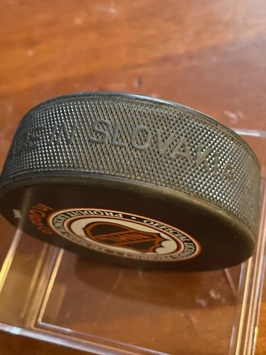 The puck is not game used but is a great way to commemorate the historic event. It features the player name "Mario Lemieux" and is made in Slovakia. This item is perfect for fans of the San Jose Sharks, Mario Lemieux, or anyone who collects official licensed hockey memorabilia.