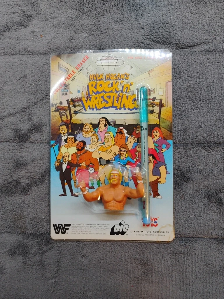 Selling a brand new, collectible Hulk Hogan's Rock 'n' Wrestling eraser! This fun eraser features Hulk Hogan and is still in its original packaging. A great piece for any wrestling fan or collector!
