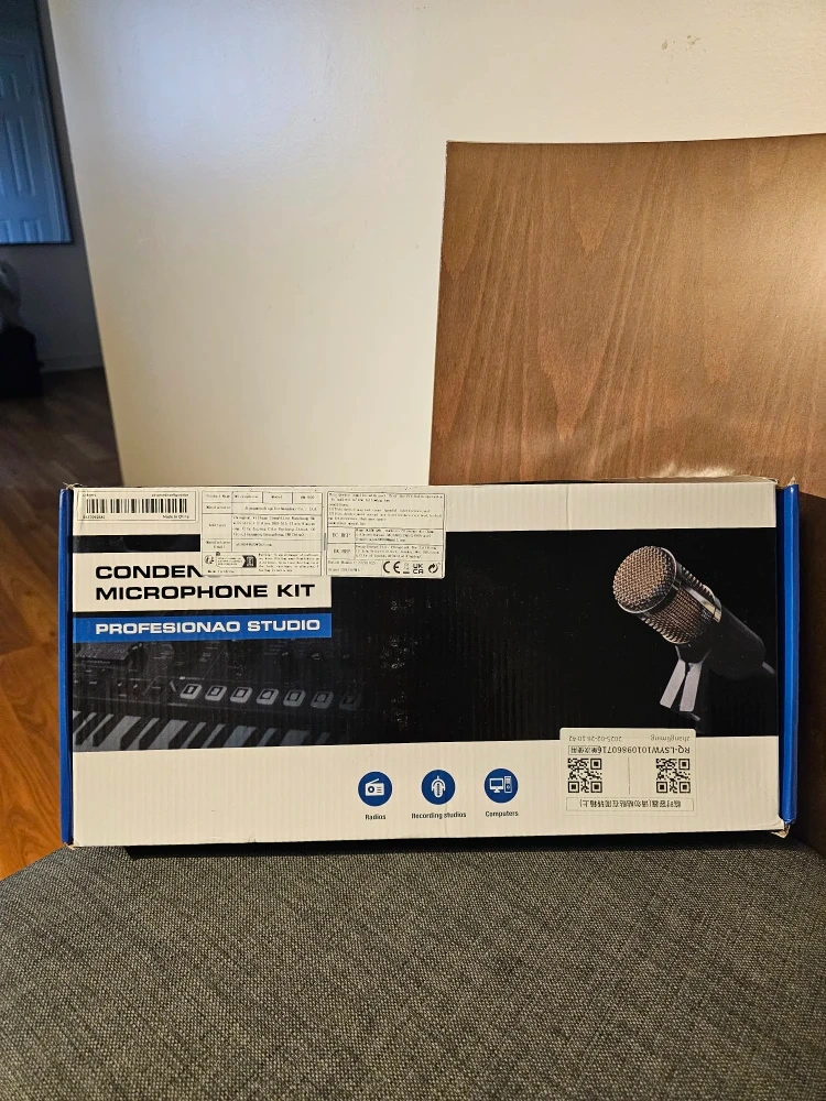 Selling a brand new condenser microphone kit, perfect for a professional studio setup! It comes complete with all the necessary components and accessories, neatly packed in its original box. If you're looking to upgrade your recording setup, this kit is a great choice! Bought 2 pieces for vlogging but never got to it. Selling for 45 or take both 80