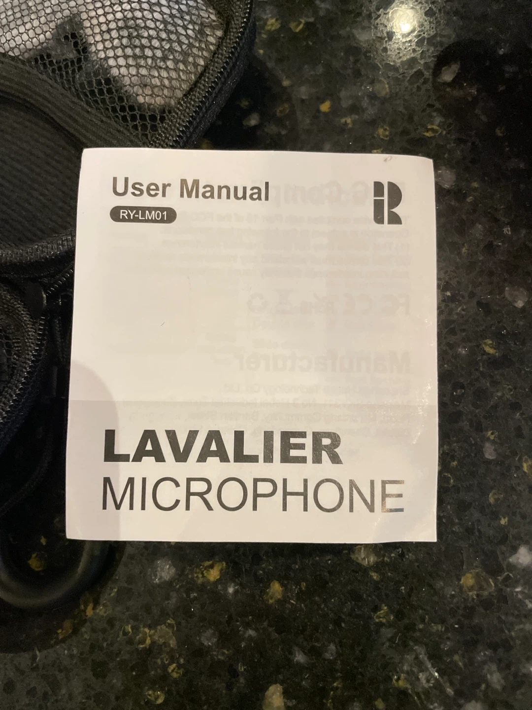 Selling a like-new Lavalier Microphone, model RY-LM01! It comes with its original box and all included components, including the user manual and carrying case. Great for recording audio on the go!