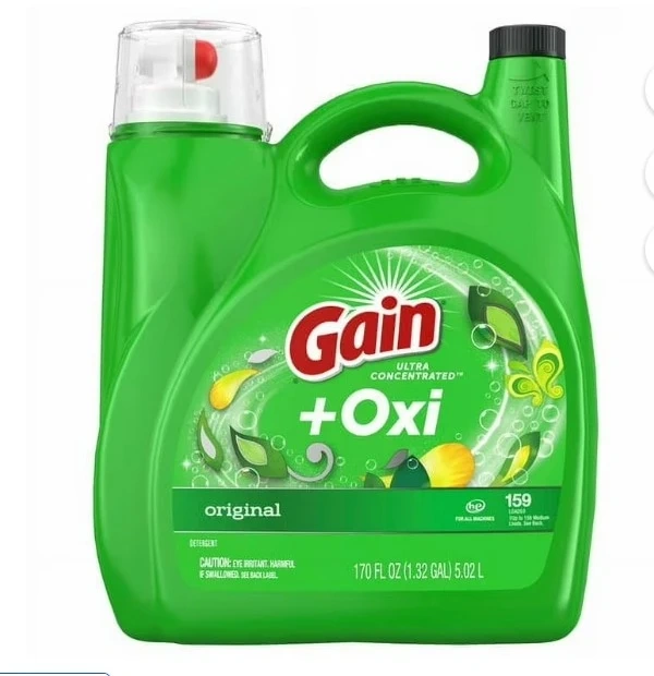 I'm selling a large container of Gain +Oxi Original Ultra Concentrated Detergent! It contains 170 fl oz (1.32 gal) or 5.02 L and is good for 159 loads in all machines