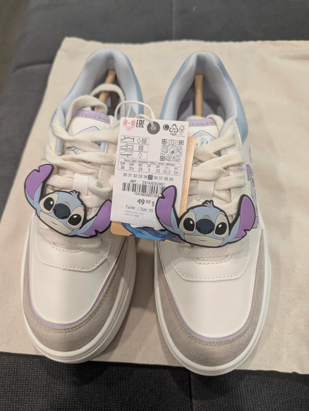 These adorable Zara sneakers feature a cute Stitch design! They are brand new with tags and are a size 35. They were originally priced at 49.90 EUR.