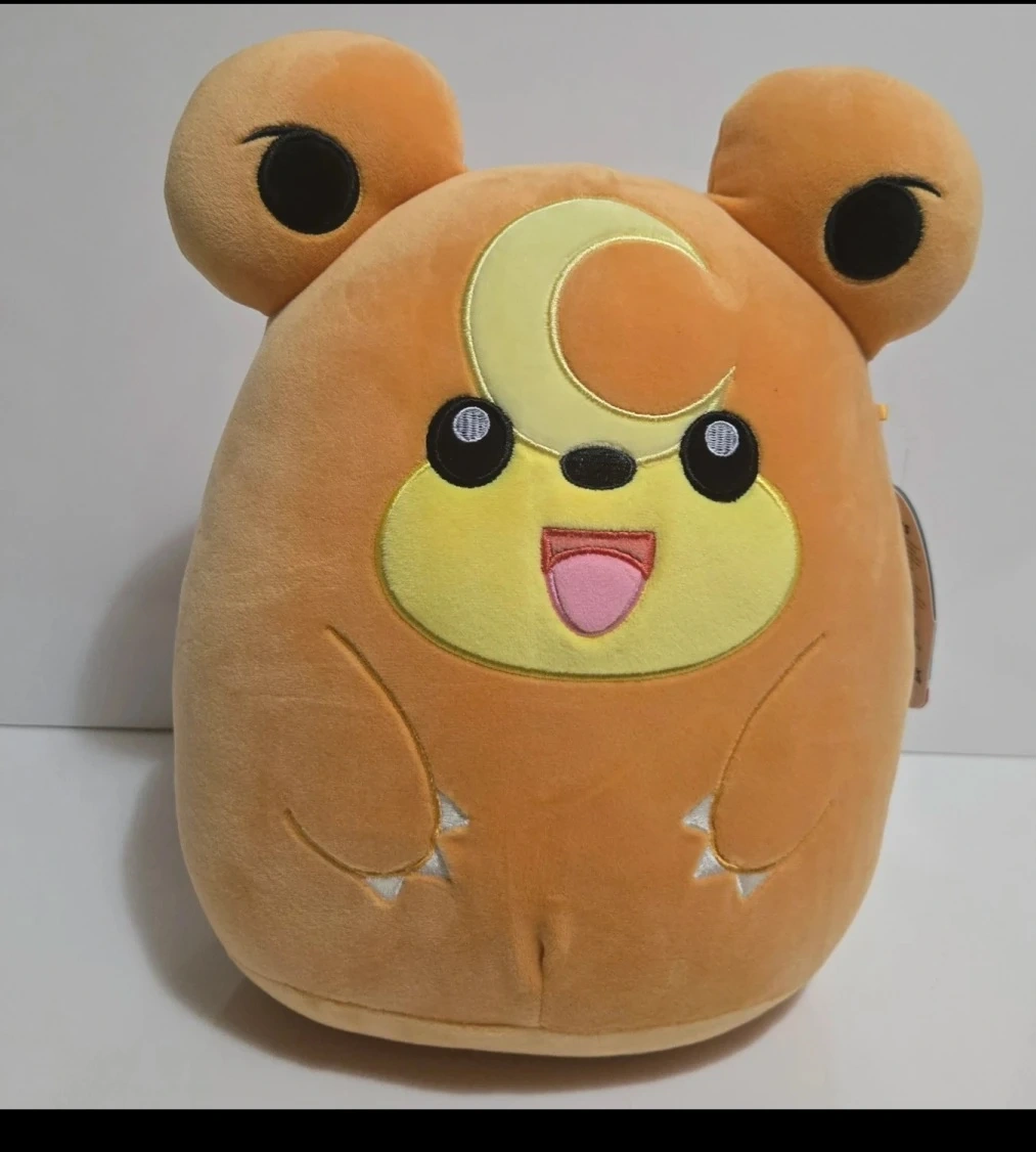 It's an Original Squishmallows plush featuring Pokémon's Teddiursa. Made with soft, cuddly material. Perfect for collectors and fans!