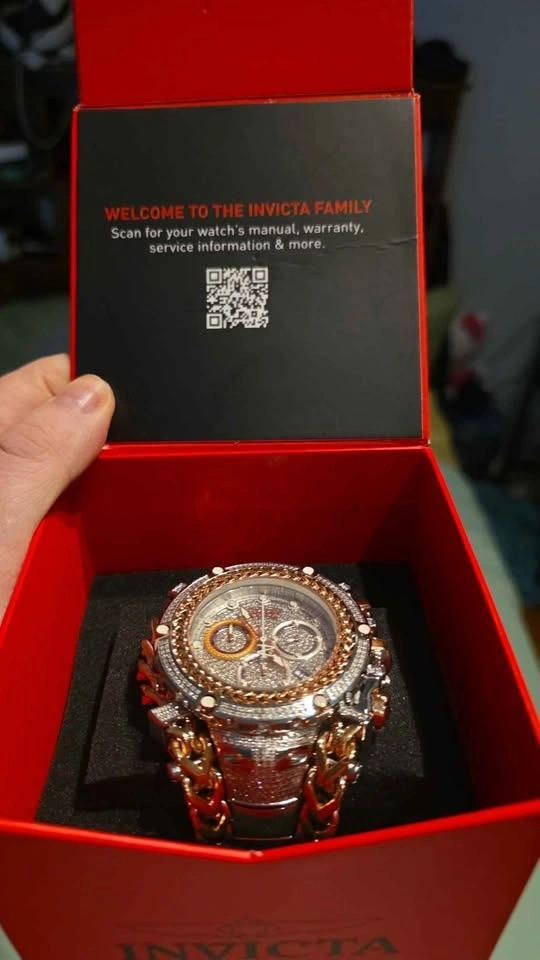 This is an Invicta Reserve Gladiator 2.92 carat diamond men's watch, model 35058, with a 58.3mm two-tone rose gold and stainless steel case and bracelet. This watch feature 696 handset diamonds.