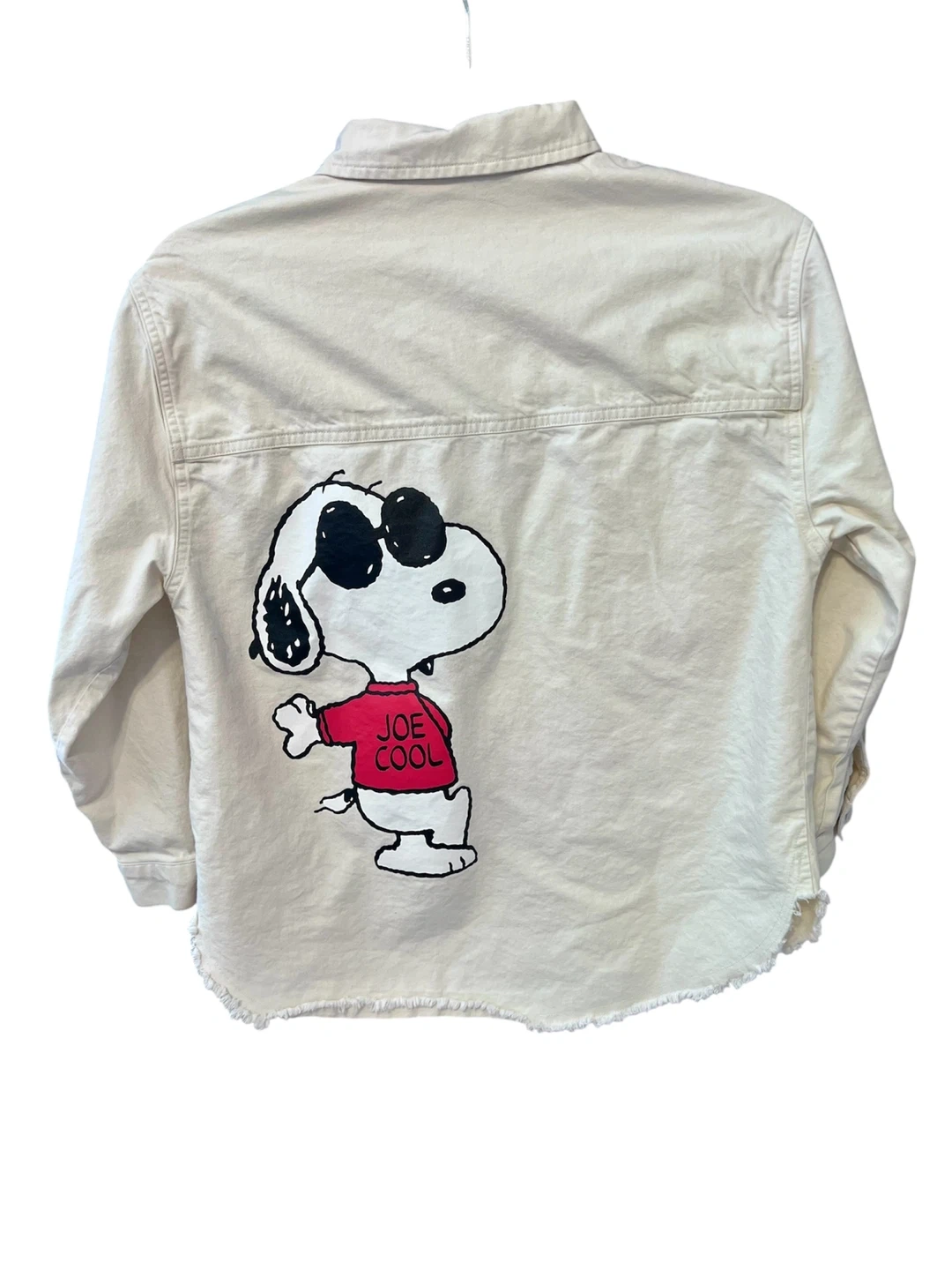 Like-new ZARA Kids x Peanuts long-sleeve button-up shirt in ivory.
