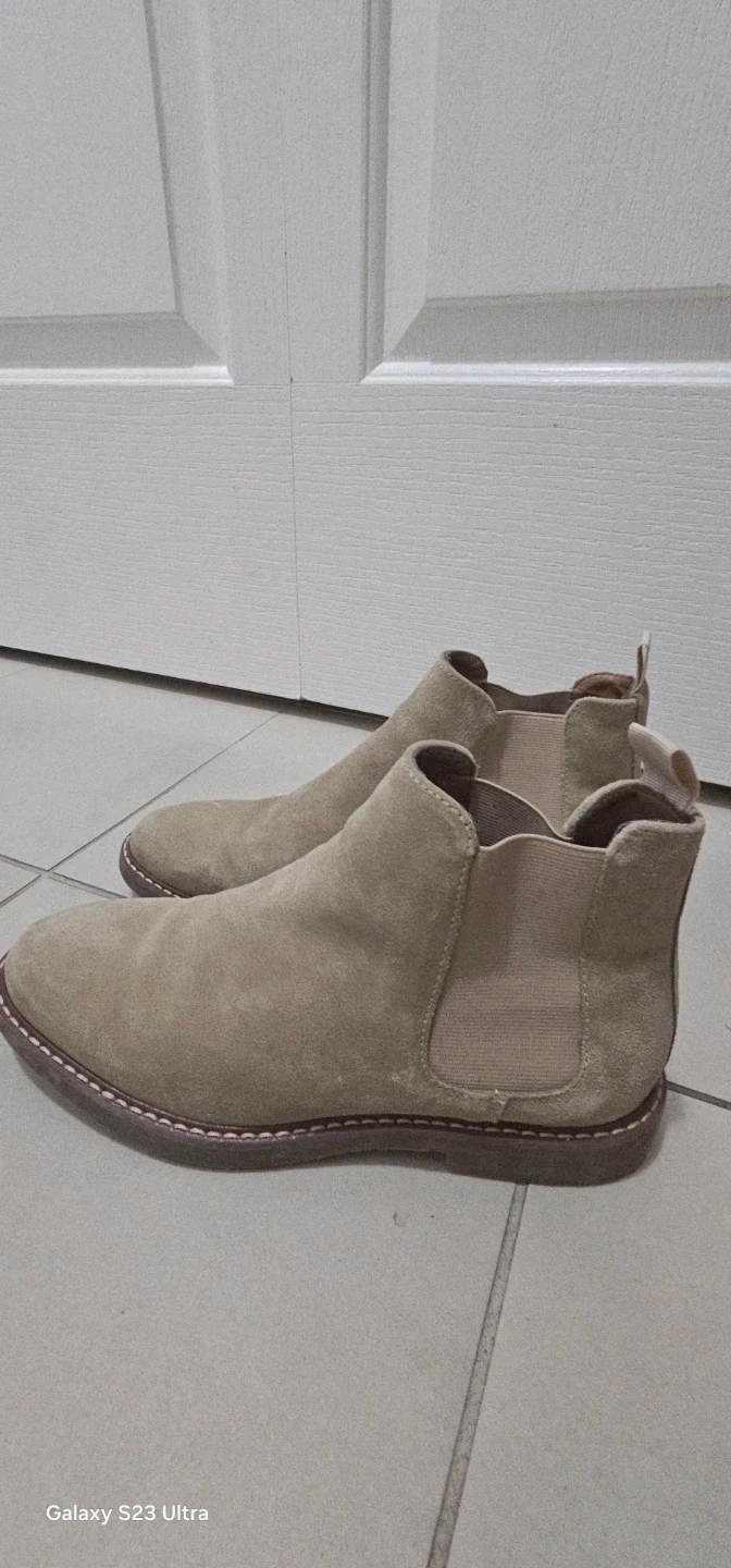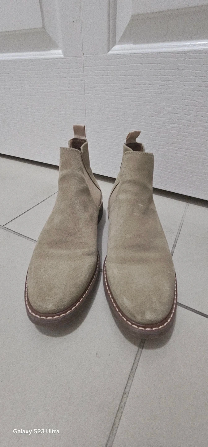 Selling a pair of beige suede Chelsea boots. They're in good condition and would be a great addition to your wardrobe. Easy to slip on and off, and the suede gives them a nice, soft look